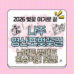 • 추천 시간대: 오후 4~5시쯤 방문해서 낮 벚꽃의 화사함을 사진에 담고, 근처에서 저녁을 먹은 뒤 해가 지면 조명 켜진 밤 벚꽃까지 하루에 모두 즐기고 오시는 것을 추천합니다! (근처 예쁜 카페나 나주 곰탕 한 그릇도 잊지 마세요 🍜)